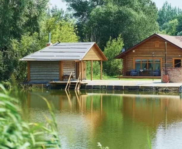 Пруд с декоративной рыбой, окружен комплексом беседок (5 шт) и бань из сруба (2 шт), а также участками ИЖС 3599 кв.м (можно построить дома для жизни/продажи/базы отдыха)