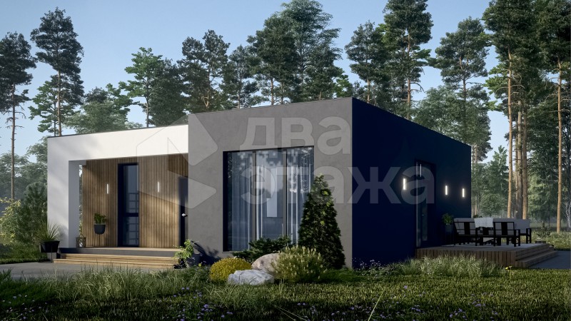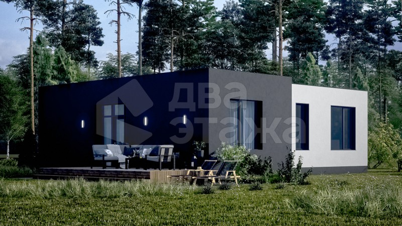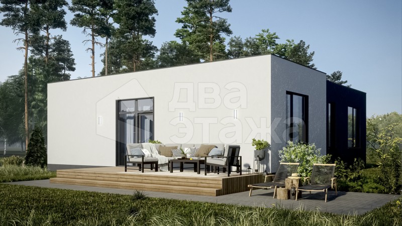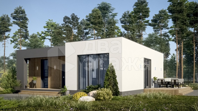 Одноэтажный просторный дом с плоской кровлей в современном минималистичном стиле площадью 85 кв.м