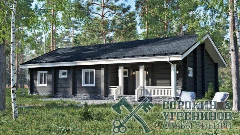 Индивидуальный проект жилого дома из лафета сечением 300х450мм, площадь дома 166м2. Размер сруба 13х18 метров. Одноэтажный дом небольшого размера выполнен из мощного большого лафета кедра, теплый и красивый, в стиле Европейского Шале. Планировка дома: три комнаты, большая гостиная совмещена с кухней, прихожая, котельная и два санузла, есть небольшая веранда. Дом был установлен в Челябинске в 2015 году.